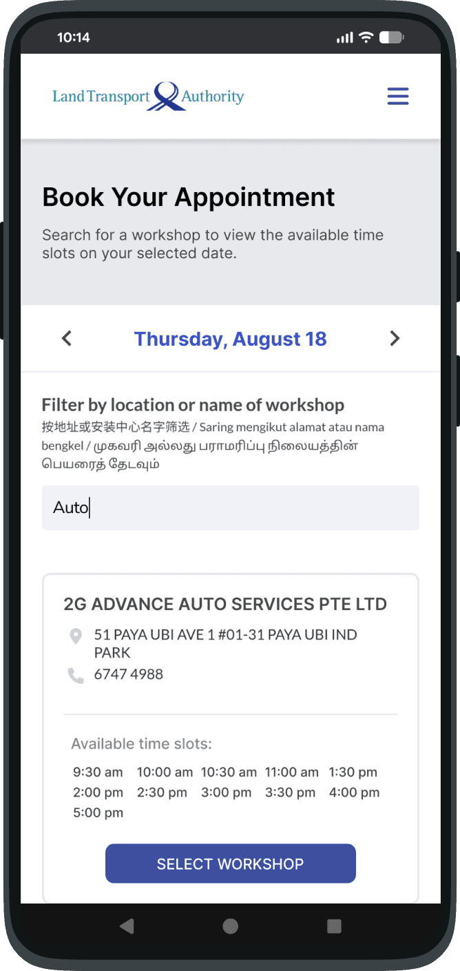 We designed the user flow to give users the choice upfront. Users who had their preferred workshops would start by locating the workshops, while those who prioritised the appointment date would first pick their desired dates.